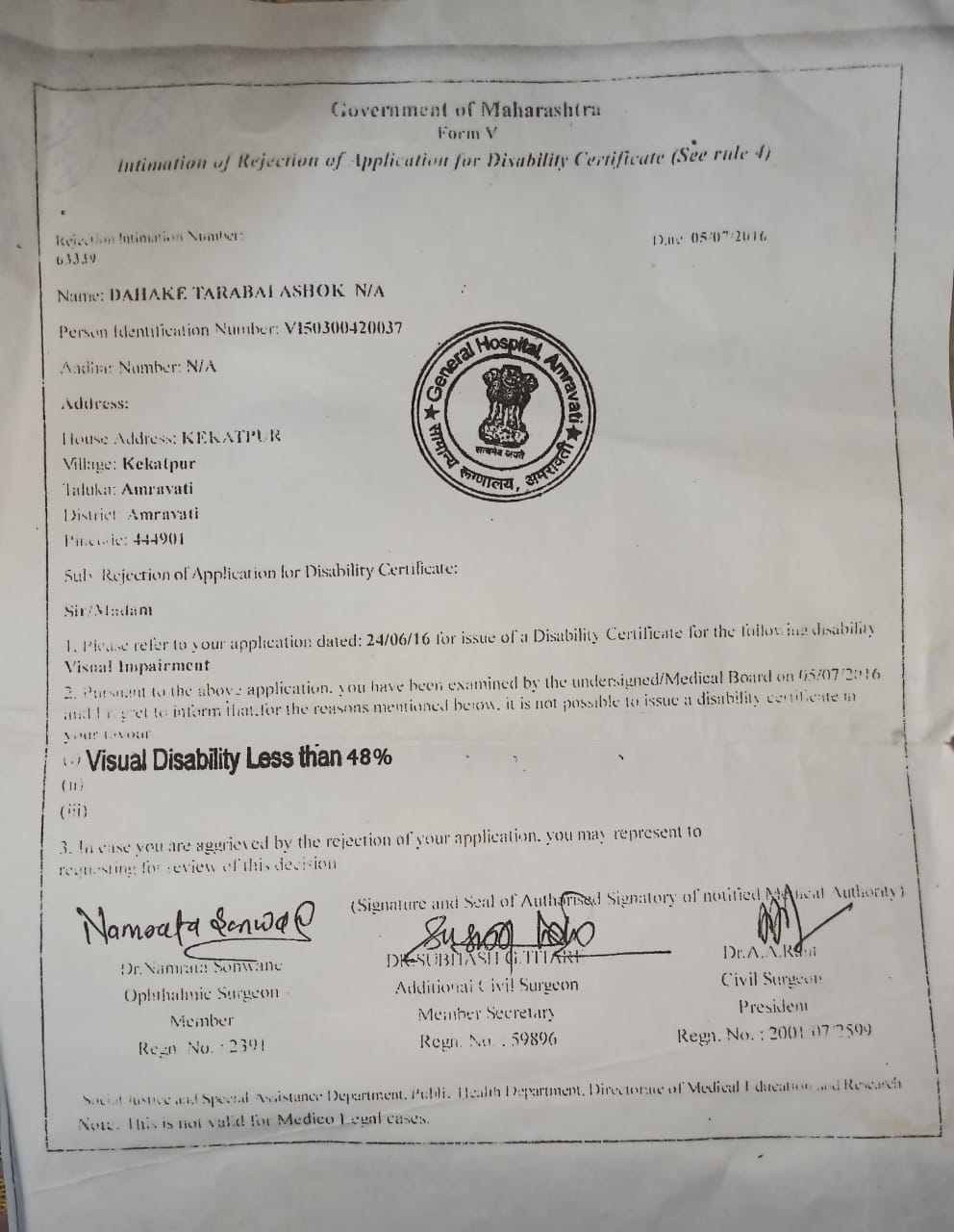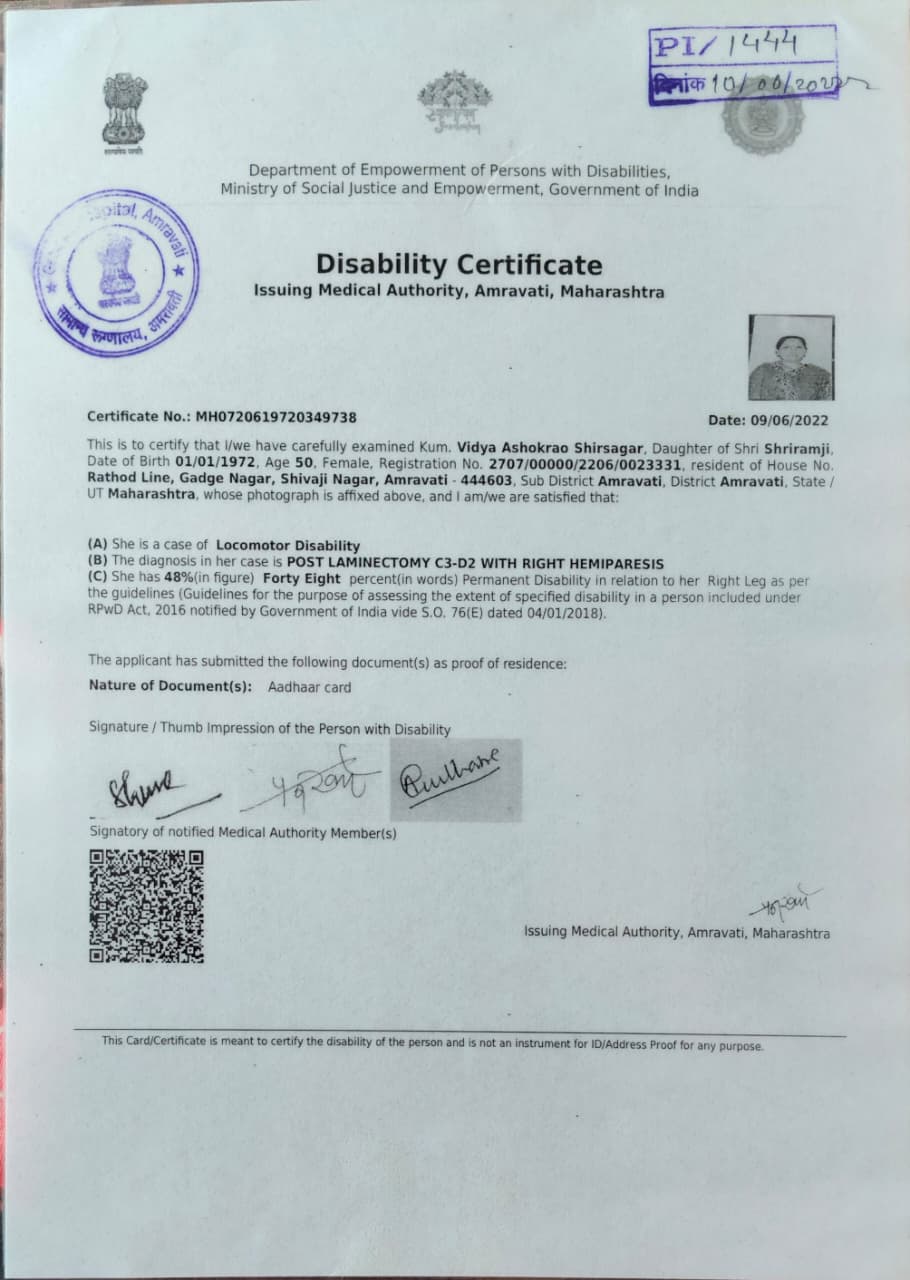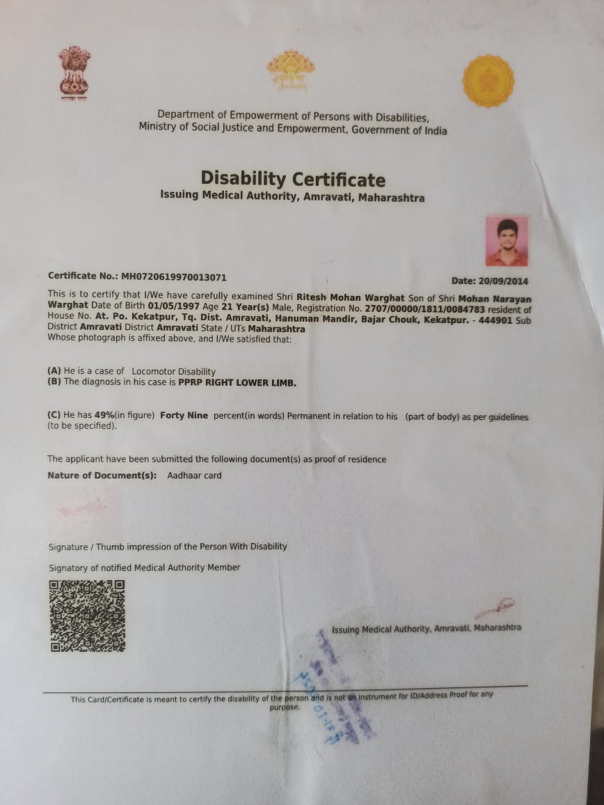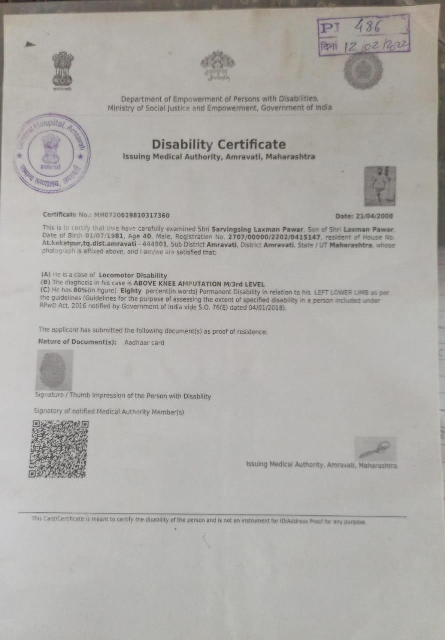 दिव्यांग प्रमाणपत्र धारकांची यादी
