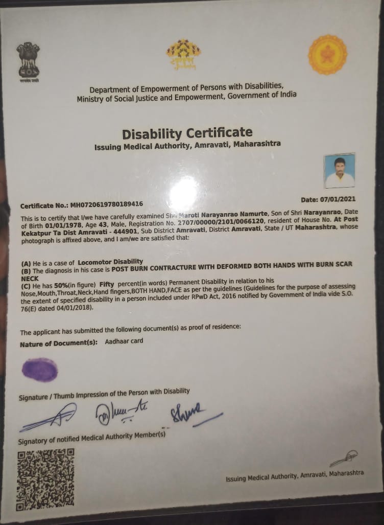 दिव्यांग प्रमाणपत्र धारकांची यादी